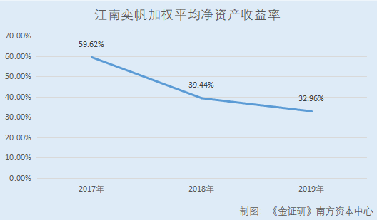 据招股书,2017-2019年以及2020年1-6月,江南奕帆扣除非经常性损益后的加权平均净资产收益率分别为59.62%、39.44%、32.96%、13.8%。