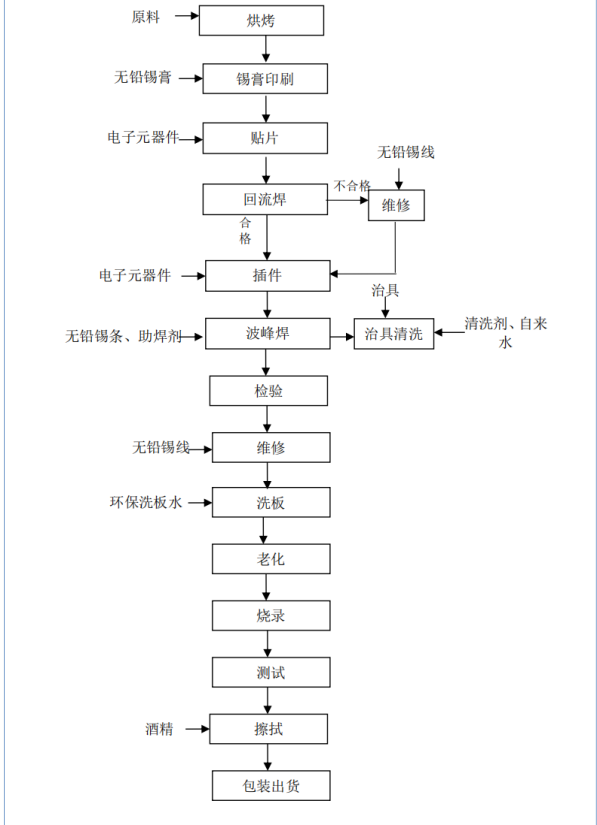 工控板卡的工艺流程共14道工序,包括烘烤、无铅锡膏印刷、电子元器件贴片、回流焊、电子元器件插件、波峰焊接、检验、无铅锡线维修、环保洗板水洗板、老化、烧录、测试、酒精擦拭、包装出货。