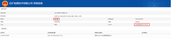 即李万春所用联系邮箱的后缀为bgrimm.com.cn,同时北矿检测在将袁玉霞登记为联系人,披露的邮箱的后缀也为bgrimm.com.cn。