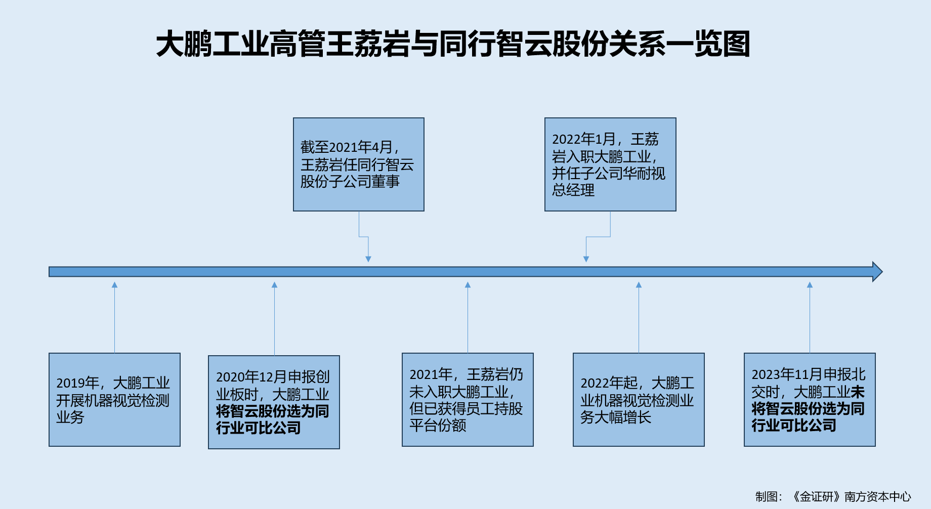 可以看出,在首轮问询披露王荔岩2021年受让大鹏工业员工持股平台份额的背景下,2022年1月,王荔岩才入职大鹏工业。然而截至2021年4月前,王荔岩彼时担任智云股份子公司的董事。