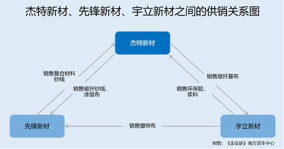 由此可见,宇立新材和先锋新材,均系杰特新材的供应商和客户。并且,杰特新材向宇立新材销售玻纤基布,宇立新材向先锋新材销售窗帘布,先锋新材向杰特新材销售复合材料纱线。