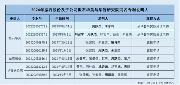 1.4 2024年振石股份与华智研究院各自单独申请的专利的发明人,均包括名为“周跃杰”及“姚诗荣”的发明人