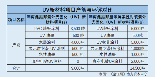 2.3 招股书披露UV新材料项目部分募投产品的建设产能,或与环评批复“对不上”