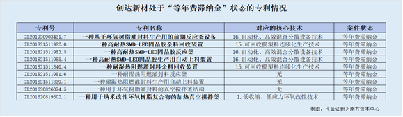 此外,创达新材还存在核心技术对应专利处于“等年费滞纳金”状态的情形。