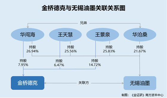 一、股东华闯海担任审计部经理且在外投资无锡油墨,金桥德克分公司、子公司与该关联方上演经营混淆异象