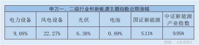 而从主题指数上看,截至2026年1月21日,中证新能源产业指数近一月涨幅为9.95%,国证新能源指数为5.11%,均超过同期沪深300涨幅的3.39%。