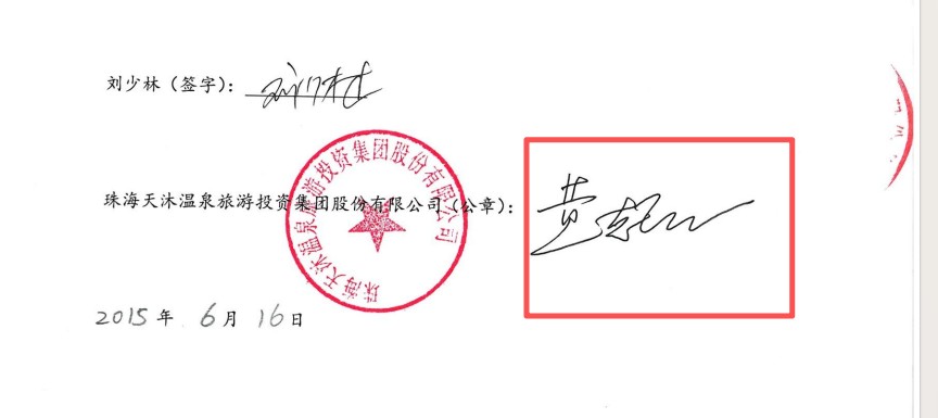 不仅如此,珠海嘉赋的股东“黄志敏”,与天沐温泉的实控人“黄志敏”,二者的签名相似。