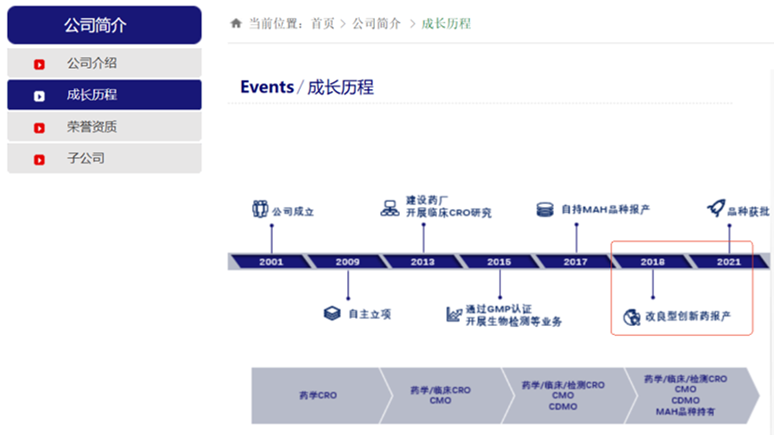 据archive回溯海纳医药官网于2022年1月29日的网页信息,“发展历程”显示,海纳医药于2018年改良型创新药报产。