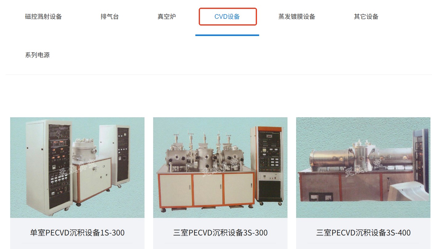 据诺思真空官网,截至查询日2026年2月6日,诺思真空称其是一家以超高真空技术为基础、以生产真空设备及各种电源为产品方向的科研生产型厂家。其主要产品包括磁控溅射设备、CVD设备、蒸发镀膜设备等。其中,CVD设备包括单室PECVD沉积设备1S-300、三室PECVD沉积设备3S-300等产品。