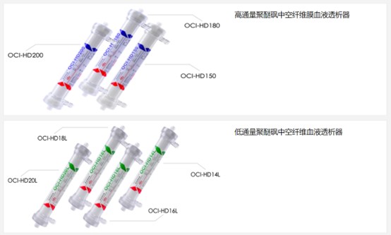 据2025年6月19日首轮问询回复及欧赛医疗官网,睿健医疗子公司生产的产品包括高通量聚醚砜中空纤维膜血液透析器、低通量聚醚砜中空纤维膜血液透析器。