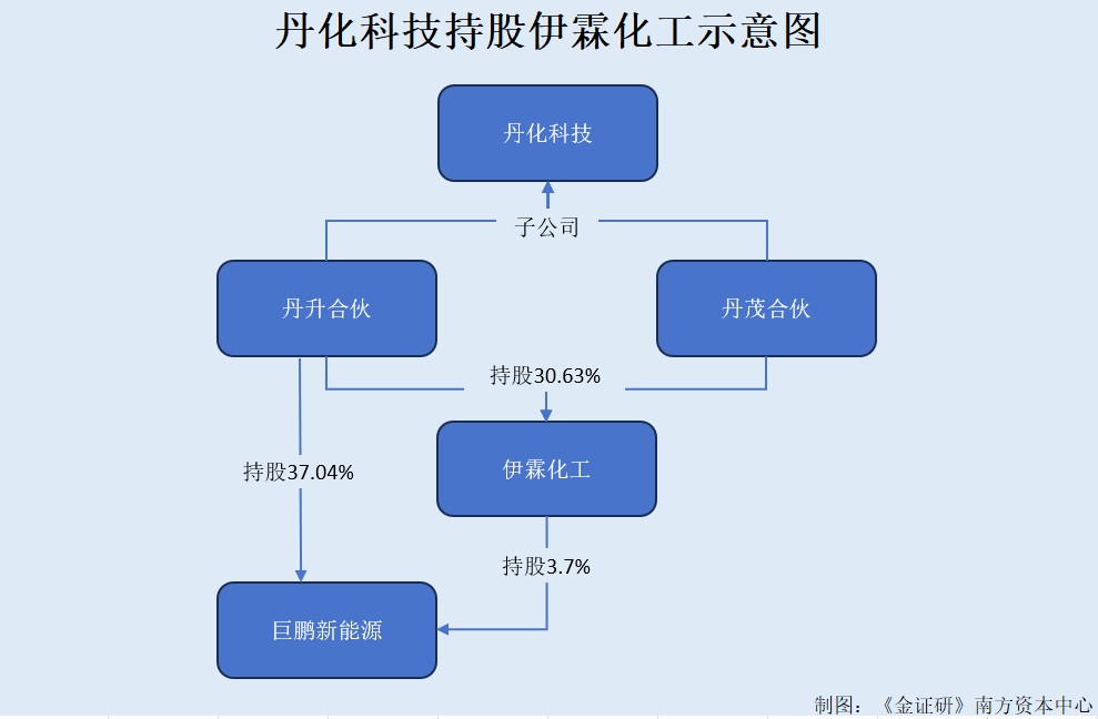 同年,丹化科技子公司丹升合伙向内蒙古伊霖巨鹏新能源有限公司(以下简称“巨鹏新能源”)参股实缴出资2,500万元,占彼时巨鹏新能源注册资本的37.04%,用于巨鹏新能源筹建年产10万吨燃料乙醇项目。该项目依附于前述乙二醇项目,最终未实际开工。彼时伊霖化工也是巨鹏新能源的股东之一,持有其3.7%股权。