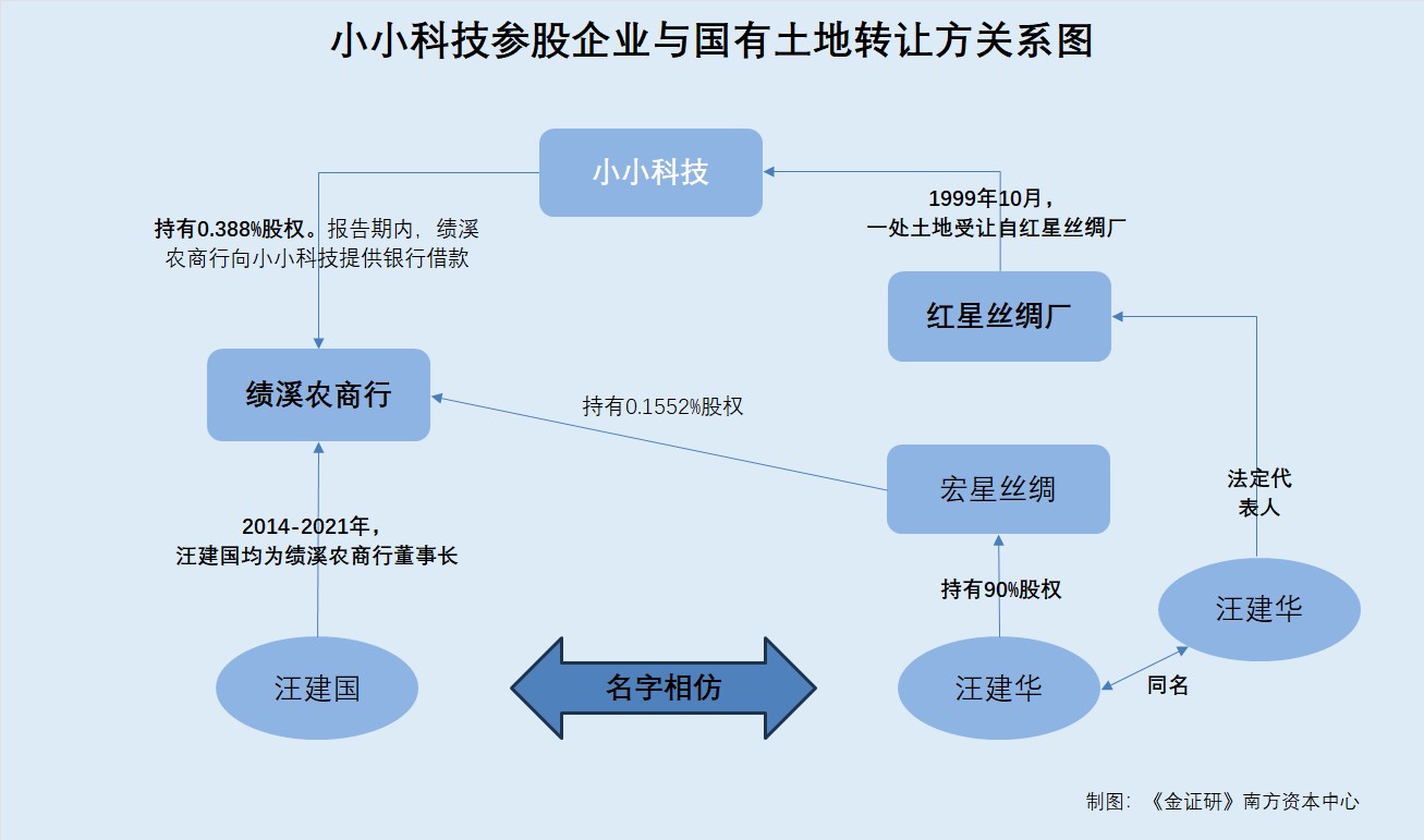 综合来看,1999年10月,小小科技自红星丝绸厂受让一处土地,红星丝绸厂存续期间,其法定代表人为汪建华。回看此番上市,小小科技参股绩溪农商行原因及背景遭问询合理性遭问询,2014-2021年,绩溪农商行的董事长汪建国。不难发现,“汪建华”与“汪建国”的名字相仿。值得一提的是,同名的“汪建华”控股的宏星丝绸亦持股绩溪农商行。此外,绩溪农商行原则上仅能为绩溪县企业提供银行贷款服务,而报告期间,绩溪农商行为小小科技部分供应商提供贷款。而回溯历史,2020年绩溪农商行因贷款“三查”不尽职被罚款。