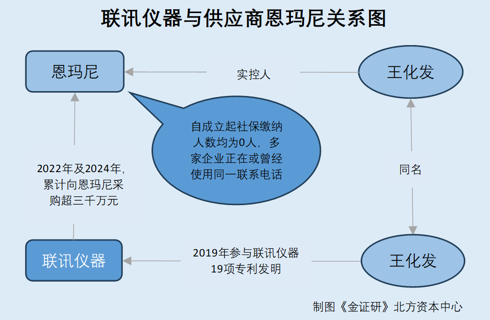 围绕联讯仪器的“故事”刚刚开始。此番上市,联讯仪器与一家供应商累计交易超三千万元,而该供应商2020-2024年的社保缴纳人数均为0人,且该供应商的实控人王化发与联讯仪器多项专利的发明人“同名”。
