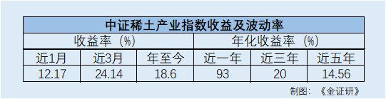拉长时间维度,该指数近1年、近3年、近5年年化收益分别为93%、20%、14.56%。说明在更长周期内,指数收益受产业周期波动影响较大,稀土产业需要穿越周期的耐心,而非短期博弈。