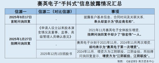 据2025年1月27日挂牌问询回复,赛英电子分别于2021年11月、2024年11月发生增资。而赛英电子披露“股权变动情况”时,将上述两次增资均披露为“赛英电子第一次增资”。