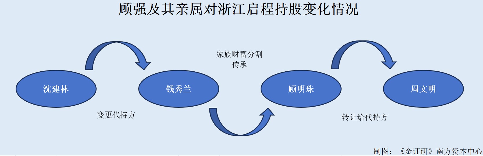 第二次为:2020年4月,钱秀兰将持有浙江启程的15%的股权转让予顾明珠,顾明珠系钱秀兰孙女。转让原因是顾强与王乃军的家族财富分割传承。定价公允性情况为家族成员内部转让,转让价格为0元。