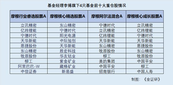 2.1 李博在管四只权益类基金,其中3只基金成分股高度重叠