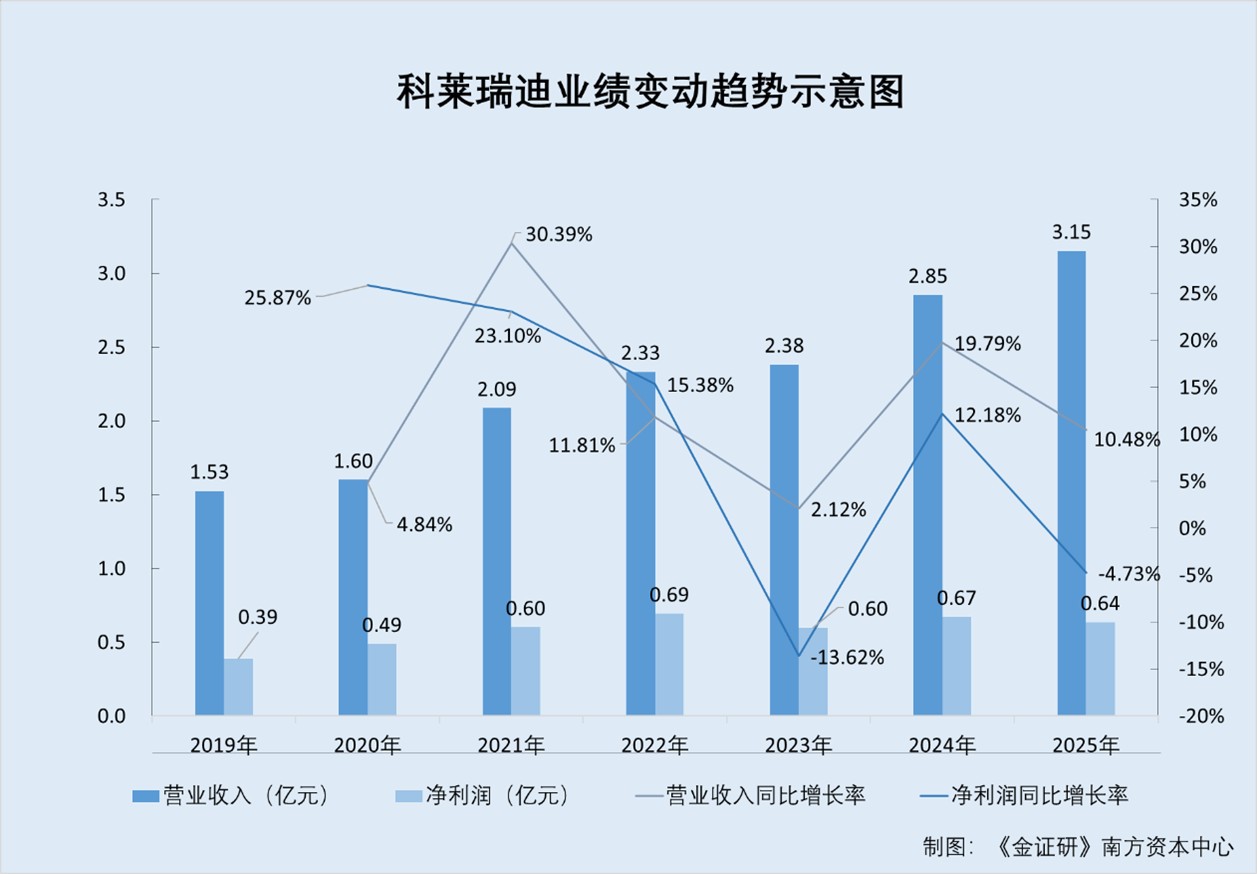 可见,2023-2025年,科莱瑞迪营收逐年增长的另一面,其净利润增速坐“过山车”。
