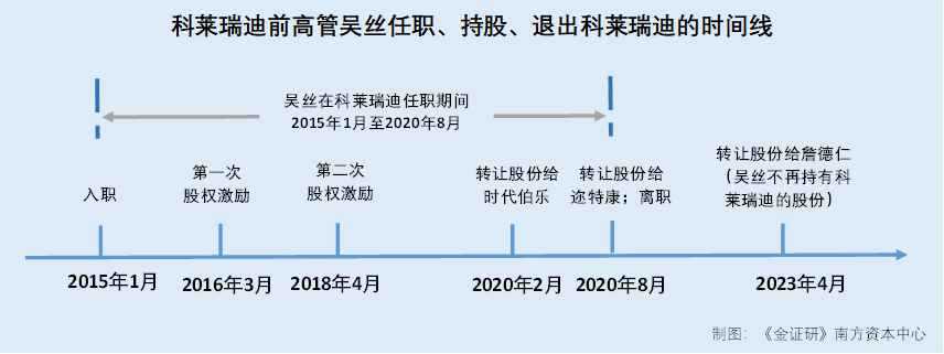 把目光聚集在吴*在科莱瑞迪任职期间的股权变动上。