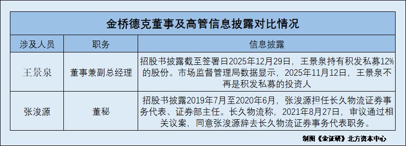 据签署于2025年12月29日的招股书,截至签署日,金桥德克董事兼副总经理王景泉持有积发私募基金管理(上海)有限公司(以下简称“积发私募”)12%的出资比例。