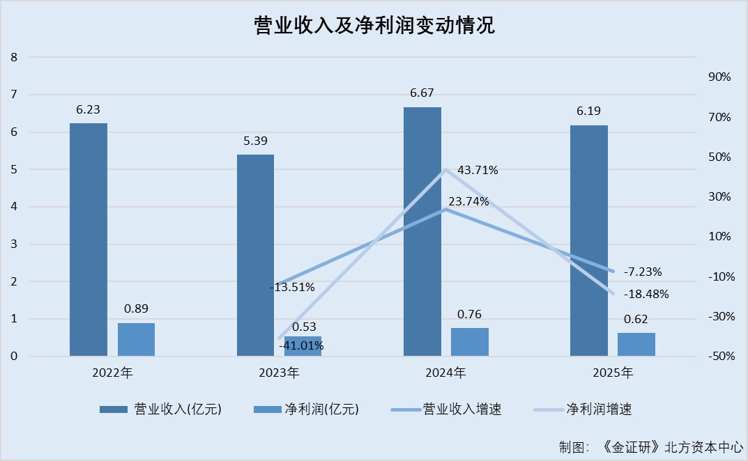 1.1 转战北交所背后业绩增速“坐过山车”,其中2025年营收及净利润均现负增长