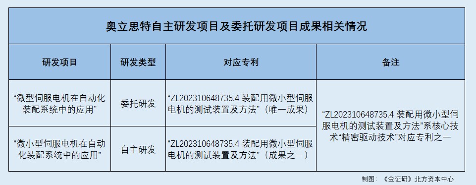 可见,奥立思特的专利“ZL202310648735.4”,既是委外研发项目“微型伺服电机在自动化装配系统中的应用”的研发成果,又是自主研发项目“微小型伺服电机在自动化装配系统中的应用”的成果之一。