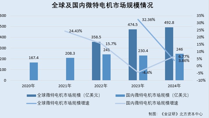 据晨光电机招股书援引数据,2023-2024年,全球微特电机市场规模分别为474.5亿美元、492.8亿美元。